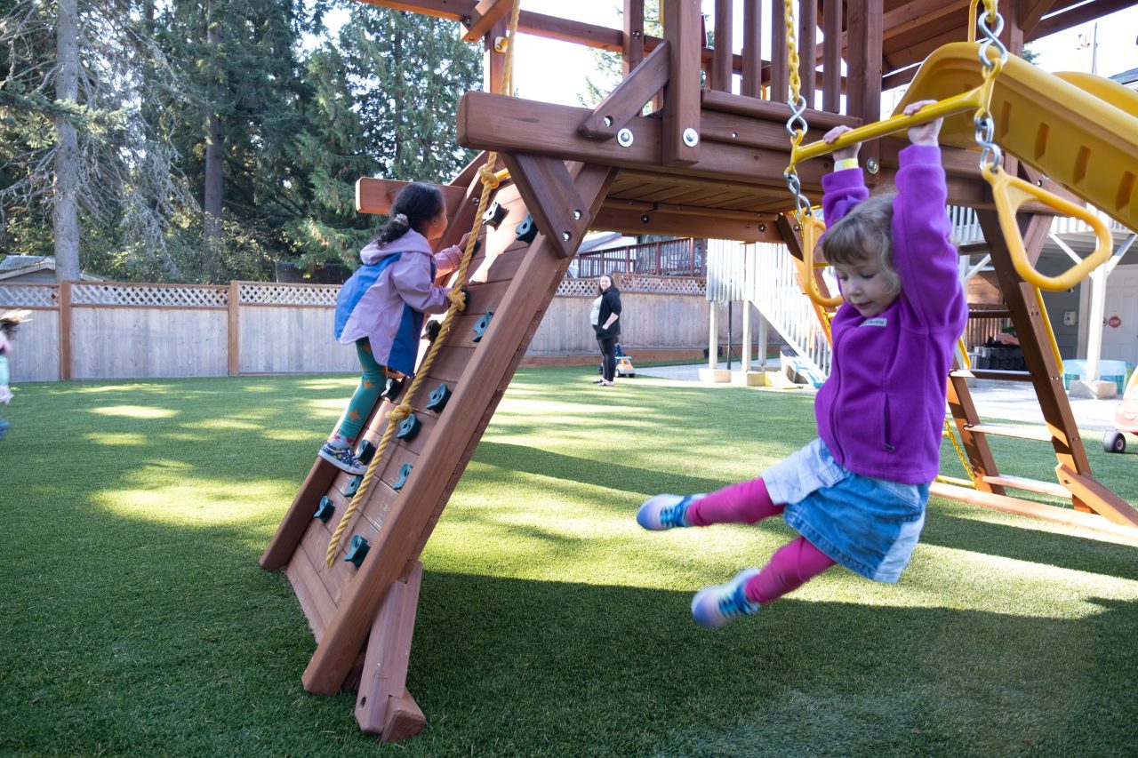 Our backyard is not a patch of grass with a plastic slide. It is a 5,000 square foot dedicated outdoor play area with premium turf, fall pads, and state-of-the-art playground structures. Purpose-built for the children in our care. No shared parks, no parking lots, no compromises.